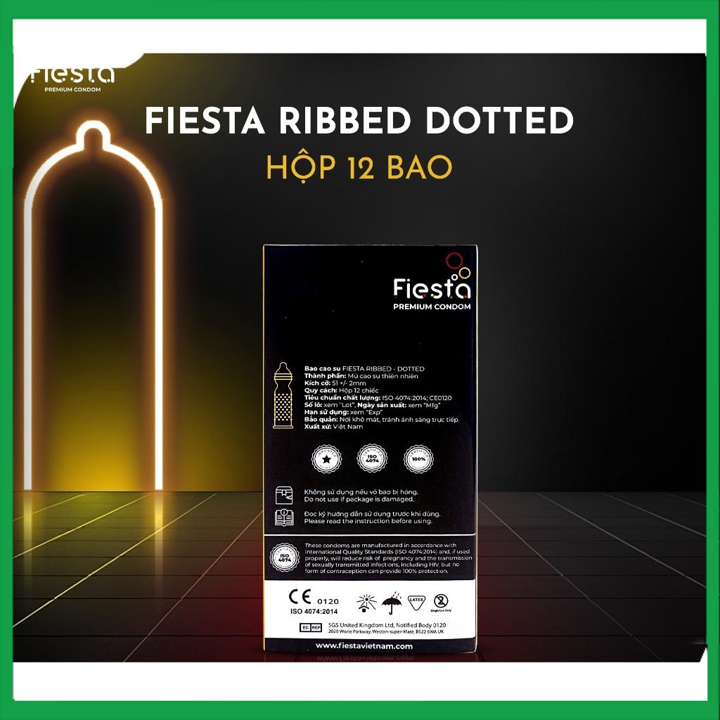 Bao cao su Fiesta Ribbed Dotted gân, gai, bo đầu 12 cái
