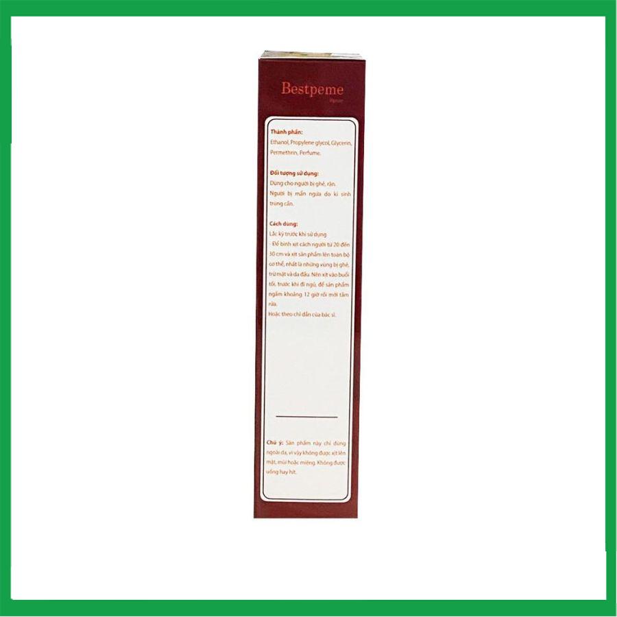 - Chai xịt Bestpeme Spray 150ml được sử dụng cho người bị ghẻ, rận. Người bị mẩn ngứa do kí sinh trùng cắn.