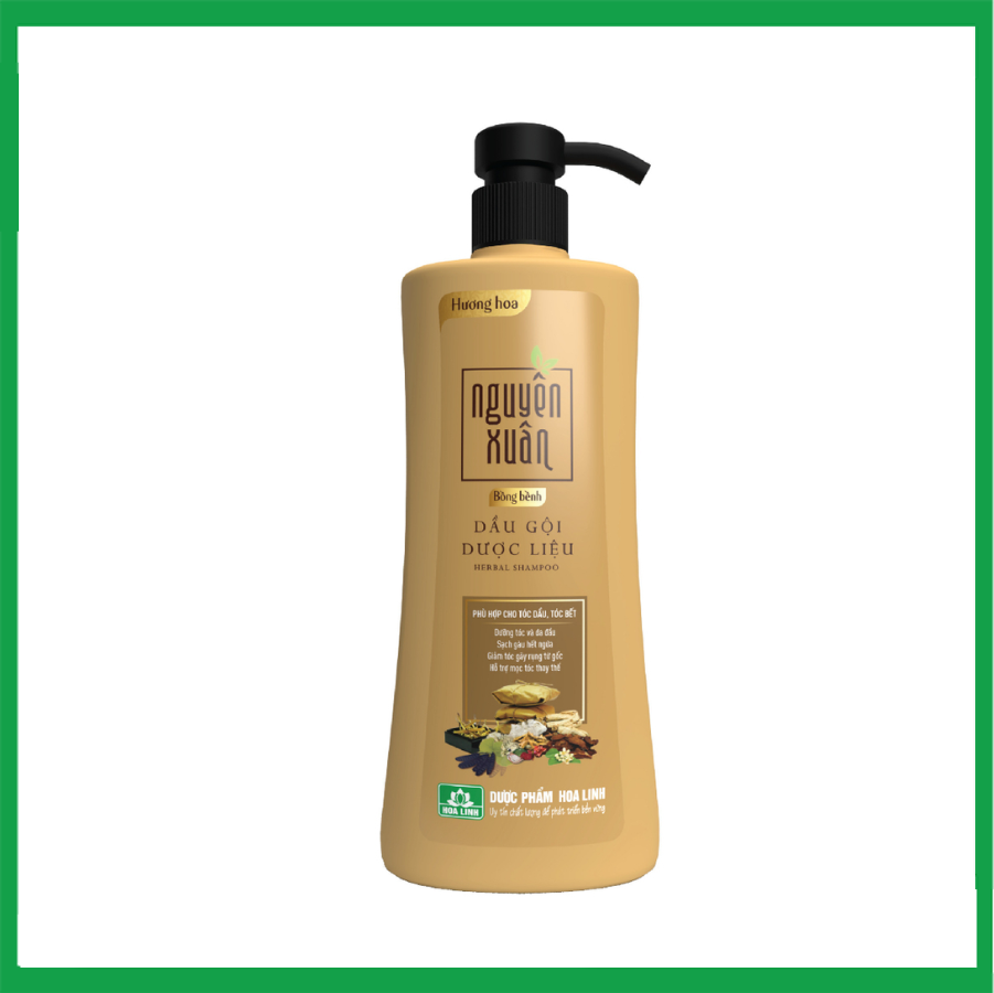 Dầu gội dược liệu Nguyên Xuân Bồng bềnh (chai vàng) giúp cân bằng lượng dầu, dưỡng tóc và da đầu, sạch gàu hết ngứa, giảm tóc gãy rụng từ gốc, hỗ trợ mọc tóc thay thế.