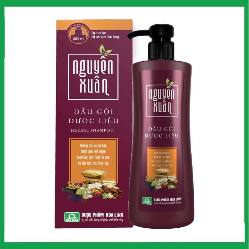 Dầu gội Dược liệu Nguyên Xuân Nâu là dầu gội được nghiên cứu dựa trên kinh nghiệm dân gian, kết hợp với những nghiên cứu mới của khoa học hiện đại . Với 13 vị Dược liệu Cổ truyền như bạch quả, hà thủ ô, bồ kết, hương nhu, cỏ mần trầu vỏ quả bưởi, sả chanh, núc nác, dâu tằm, cỏ ngũ sắc… dầu gội Dược liệu Nguyên Xuân giúp dưỡng da đầu và dưỡng tóc từ gốc, giảm tóc gãy rụng, thúc đẩy quá trình mọc tóc thay thế. Từ đó, giúp giảm các vấn đề về tóc: rụng tóc, tóc khô và xơ, da đầu ngứa và nhiều gàu.