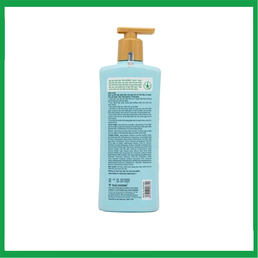 Dầu gội Thái Dương 7 hoa bưởi tây dành cho tóc gàu, ngứa, nấm da đầu. Hỗ trợ phục hồi tóc hư tổn, cải thiện tình trạng tóc gãy rụng. Ngăn ngừa và điều trị các bệnh về da đầu như nấm da đầu, gàu, ngứa. Dưỡng tóc mềm mại, suôn mượt và kích thích mọc tóc.