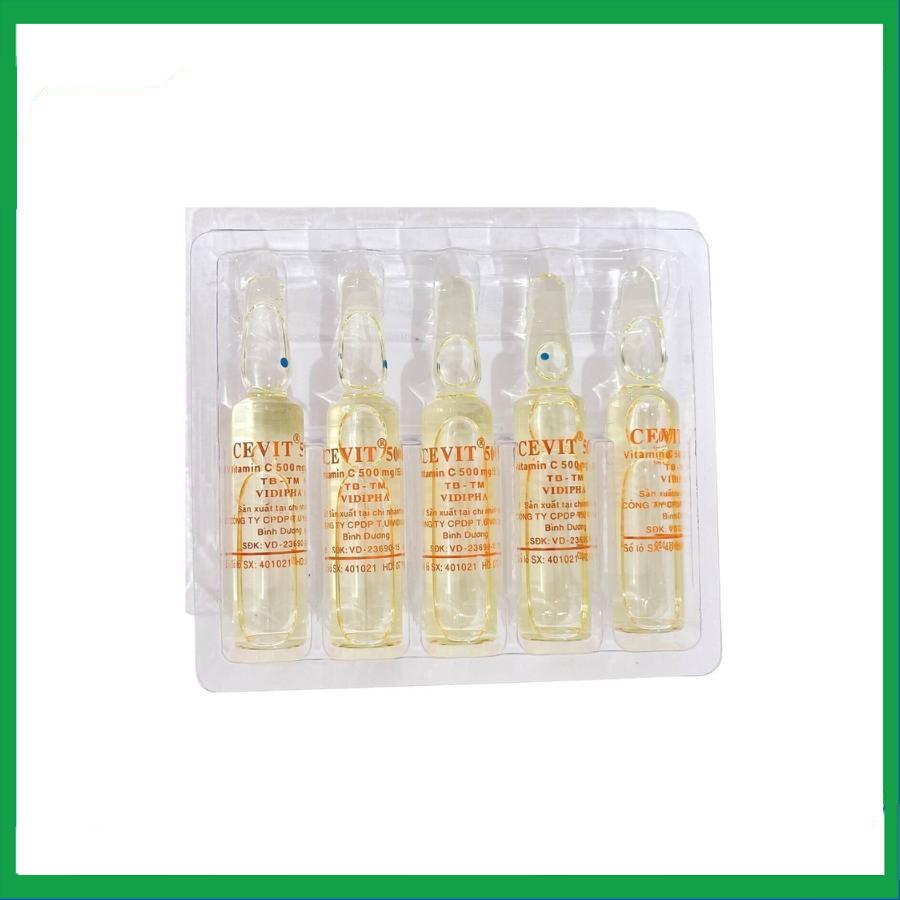 Thuốc Cevit 500 được bào chế dưới dạng thuốc tiêm. Hộp 100 ống x 5 ml.