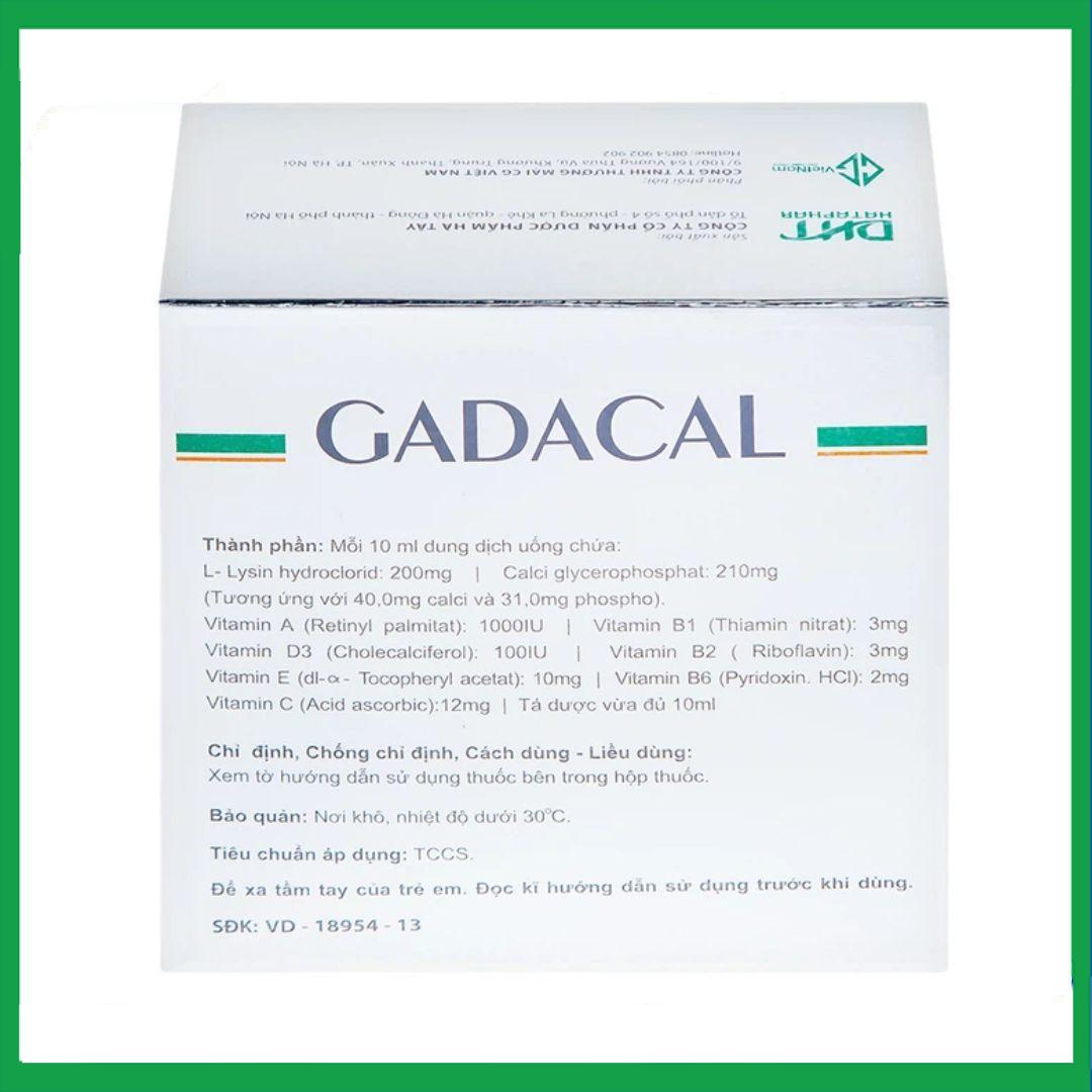 Thuốc Gadacal 10ml gồm các vitamin và khoáng chất để phòng và điều trị các trường hợp thiếu vitamin và khoáng chất, cơ thể suy nhược.