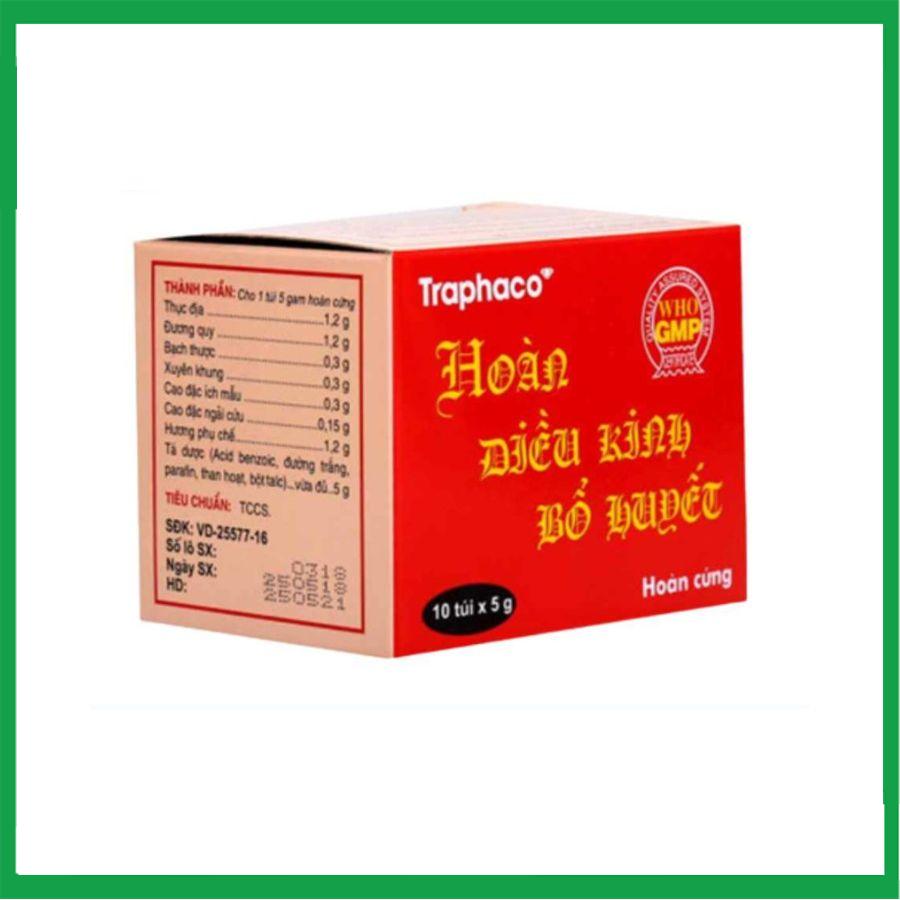 Hoàn Điều Kinh Bổ Huyết Hộp 10 gói x 5g của Công ty cổ phần Traphaco được biết đến phổ biến với tác dụng điều trị rối loạn kinh nguyệt, điều kinh, bổ huyết