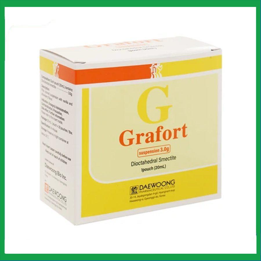 Thuốc Grafort là sản phẩm của Công ty Daewoong có thành phần chính là Dioctahedral smectite, đây là thuốc được sử dụng trong điều trị các triệu chứng đau có liên quan đến các bệnh viêm thực quản, dạ dày và ruột. Tiêu chảy cấp và mạn tính sau khi đã bù đủ nước và điện giải.