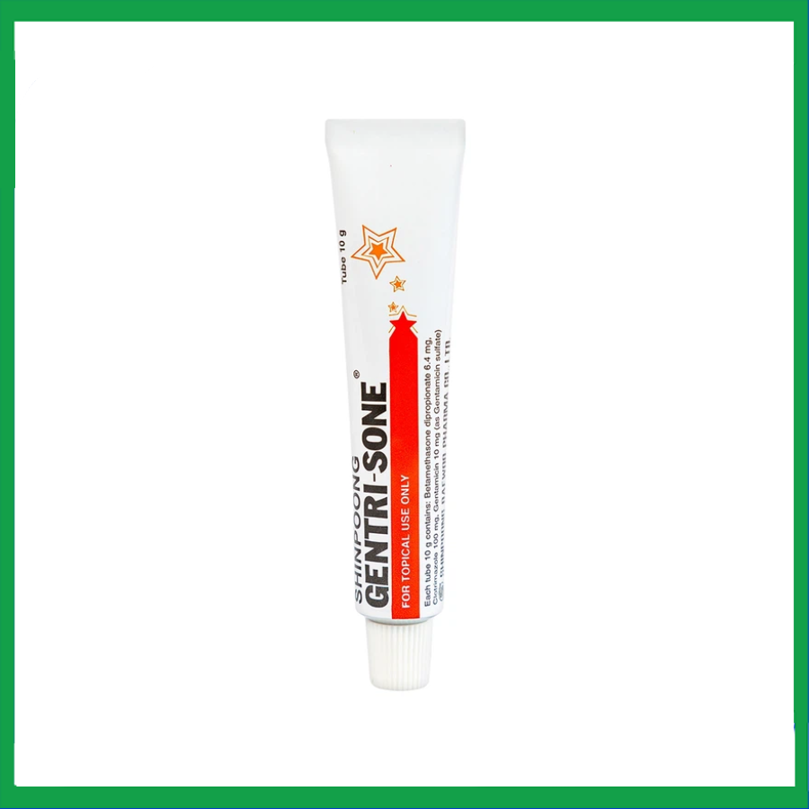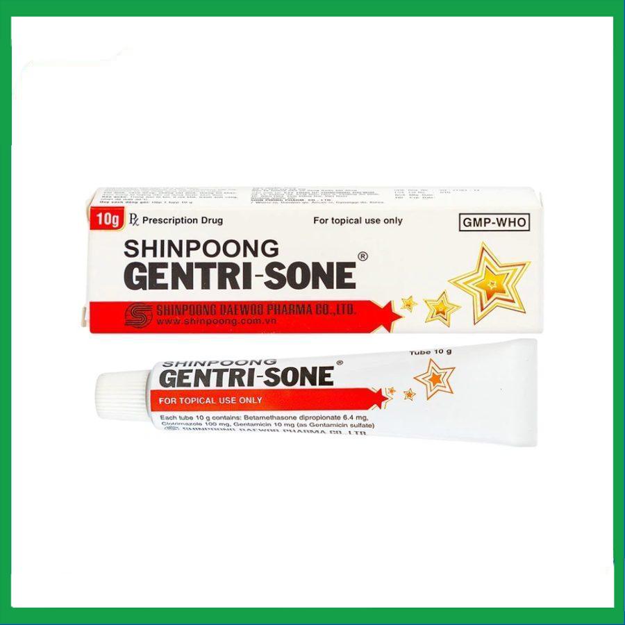 Thuốc Gentrisone dạng kem 10g của Công Ty Dược Phẩm ShinPoong thuộc Tập Đoàn Quốc Tế Daewoo có thành phần chính là Betamethason Dipropionat, Clotrimazol, Gentamicin. Gentrisone là thuốc điều trị nấm da do Candida Albicans và lang ben do Malassezia Furfu. Điều trị nấm thân (lác, hắc lào), nấm bẹn và nấm bàn chân do Trichophyton Rubrum, T.mentagrophytes, Epidermophyton Floccosum, hoặc Microsporum Canis gây ra. Nhiễm trùng bề mặt da do các chủng vi khuẩn nhạy cảm gây ra.