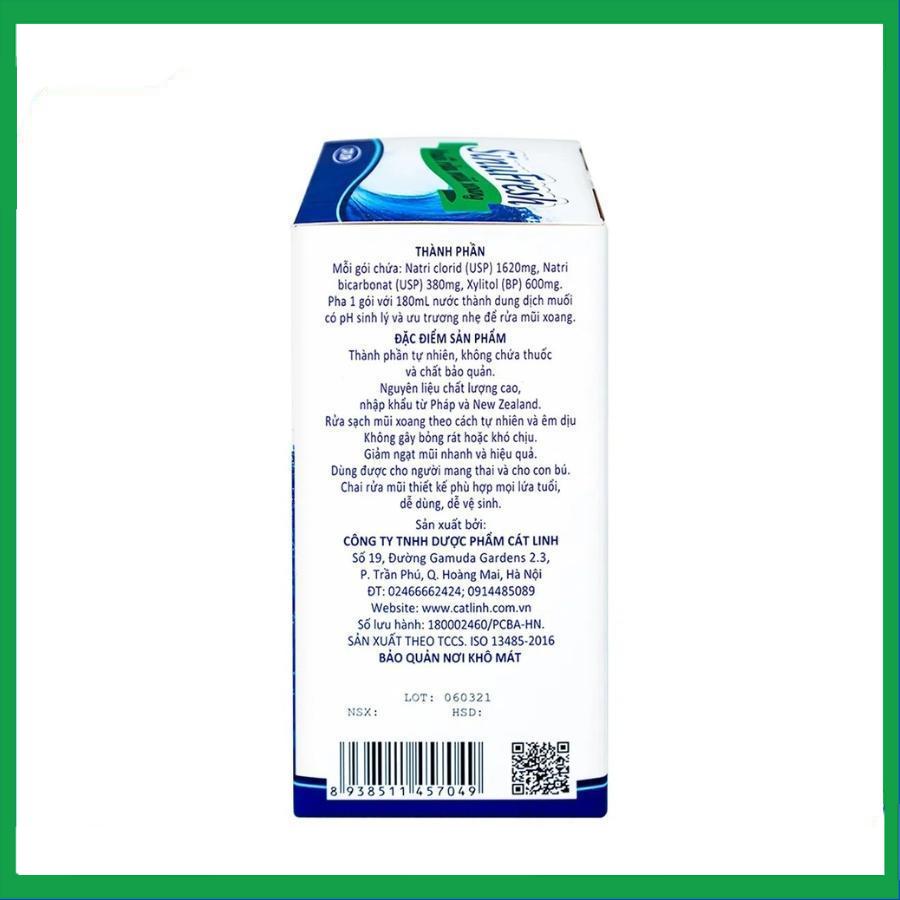 Muối rửa mũi xoang SinuFresh Cát Linh dùng cho khô mũi, ngạt mũi, chảy nước mũi (30 gói + 1 chai 180ml)