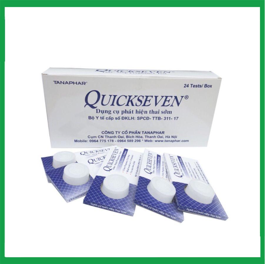 Quickseven Dụng Cụ Phát Hiện Thai Sớm Tanaphar (H/24que) là một trong những sản phẩm thử thai đem lại kết quả đúng và nhanh chóng nhất mà không cần đến những biện pháp thăm khám của bác sĩ. Sản phẩm được cấp phép đầy đủ từ Bộ Y Tế. Hiện nay, sản phẩm được phân phối rộng rãi toàn quốc.