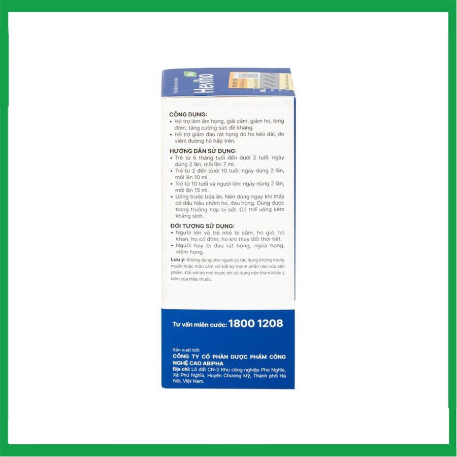 Siro Heviho là giải pháp an toàn giúp giảm ho, long đờm, đau rát họng, khản tiếng do ho kéo dài. Sản phẩm được chuyển giao từ đề đài Viện Hàn lâm Khoa học và Công nghệ Việt Nam.