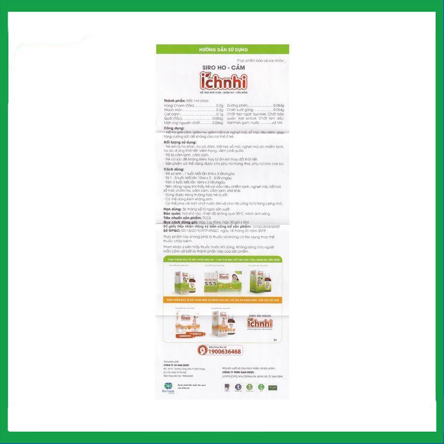 Siro ho cảm Ích Nhi hỗ trợ giải cảm, giảm ho, tiêu đờm (30 gói x 5ml)