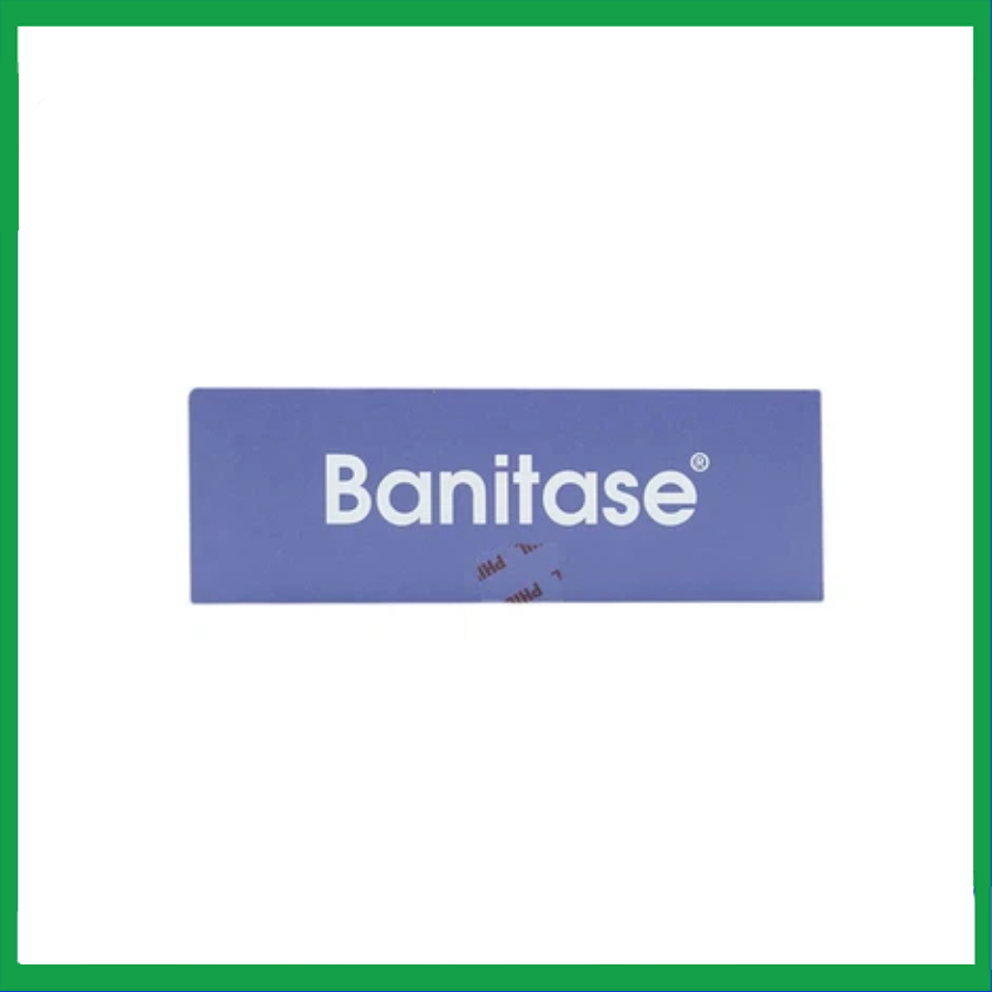 Banitase của Công ty TNHH Phil Interpharma. Thuốc có thành phần chính là Trimebutine maleate 100mg, Acid dehydrocholic 25mg, Pancreatin (Pancrelipase) 150mg, Bromelains 50mg, Simethicone 300mg. Đây là thuốc dùng trong điều trị các triệu chứng liên quan đến hệ tiêu hóa, với hoạt chất là Trimebutine.