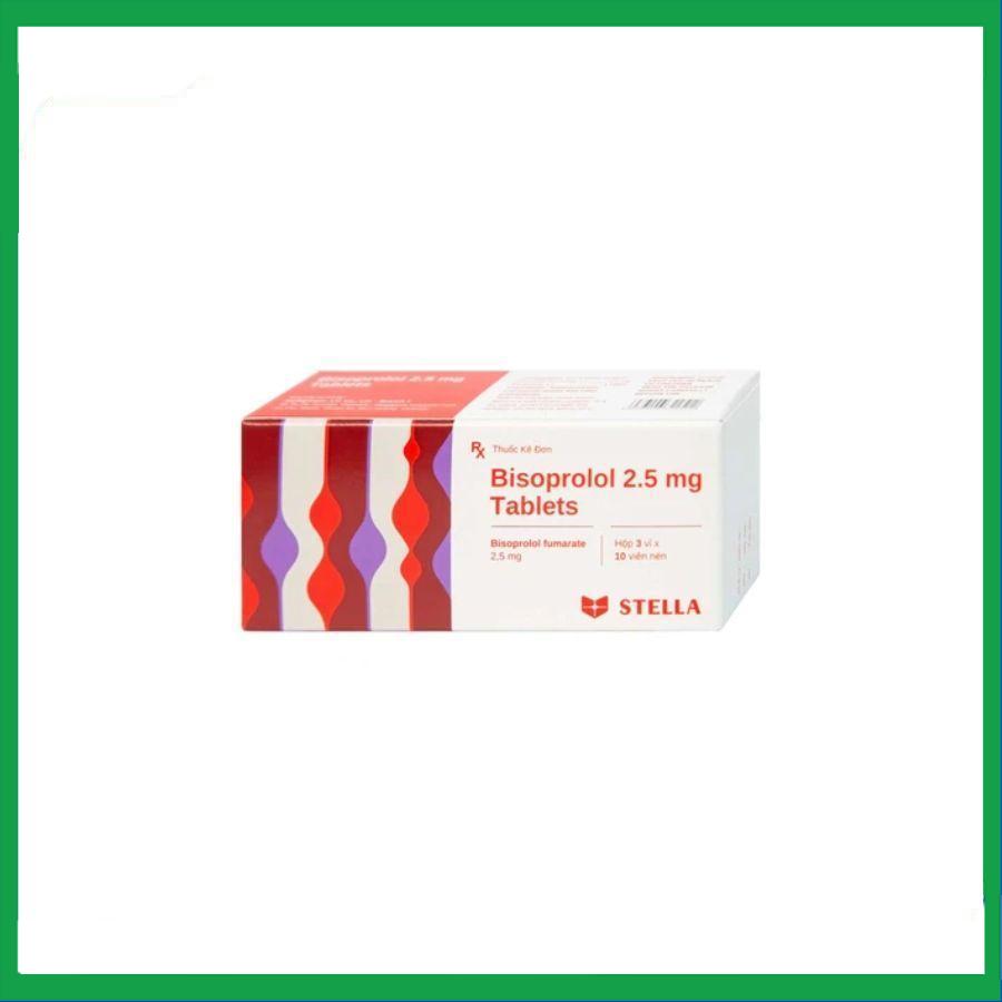 Thuốc Bisoprolol 2,5mg là sản phẩm của Stellapharm, chứa hoạt chất chính là Bisoprolol Fumarate. Bisoprolol 2,5 mg dùng để điều trị tăng huyết áp, đau thắt ngực mạn tính ổn định. Ngoài ra, thuốc còn được chỉ định điều trị suy tim mạn tính ổn định kèm suy giảm chức năng tâm thu thất trái.