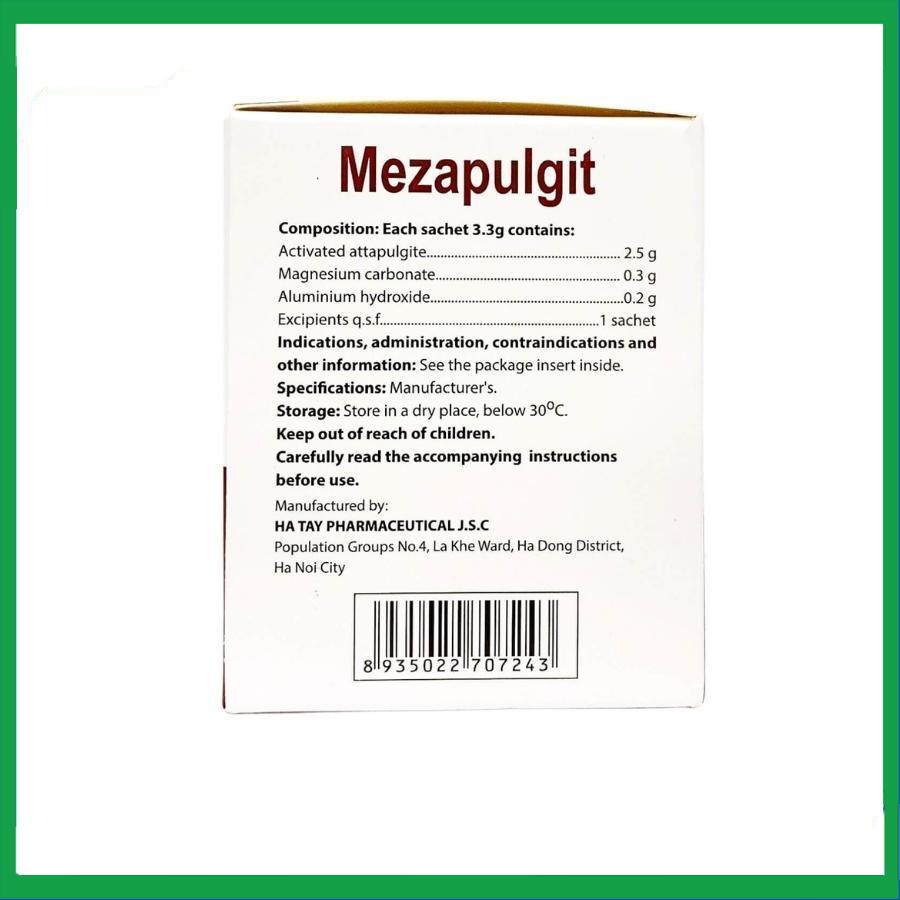Mezapulgit được sản xuất bởi công ty dược và thiết bị y tế Hà Tây (Việt Nam) dùng điều trị triệu chứng loét dạ dày – tá tràng, viêm dạ dày, hồi lưu thực quản dạ – dày, đau thượng vị, rát bỏng vùng dạ dày hay thực quản.