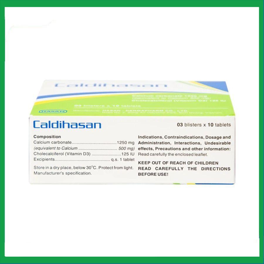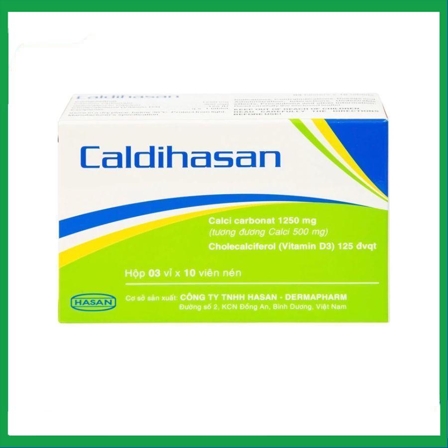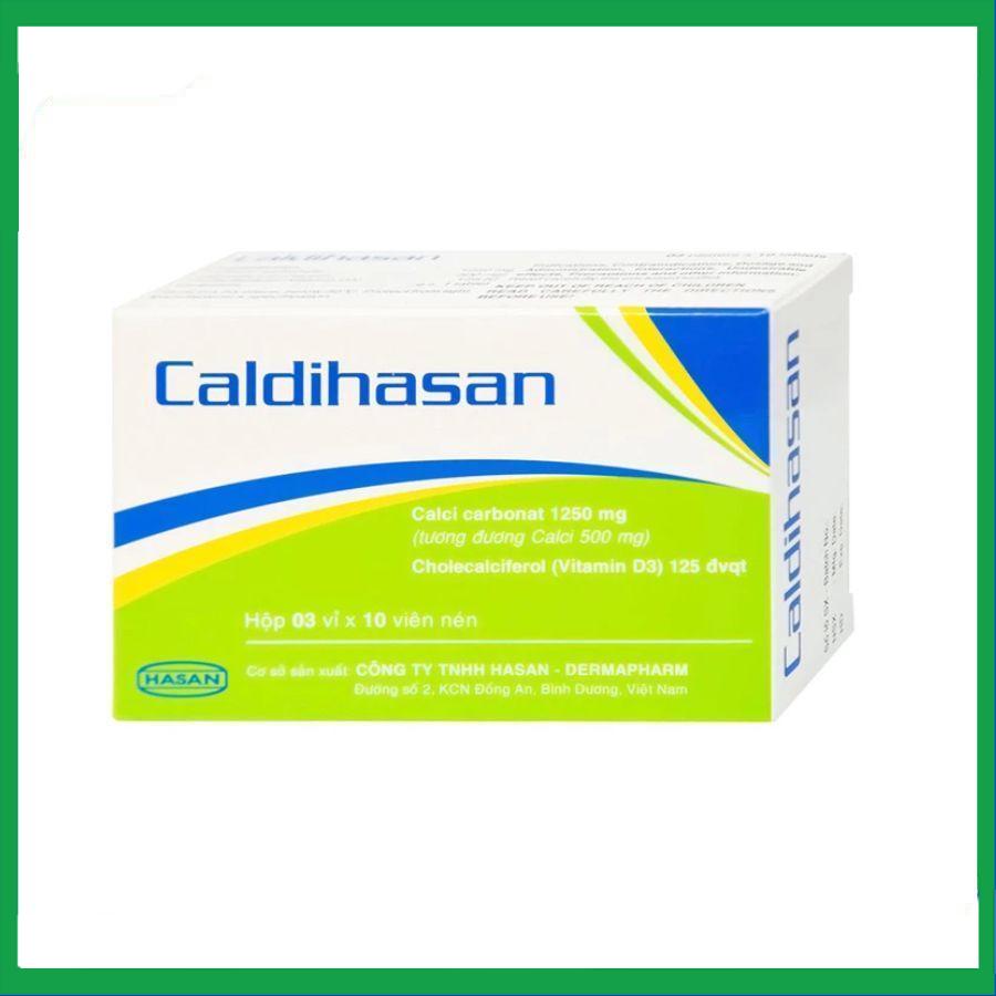 Caldihasan là sản phẩm của Công ty TNHH Hasan – Dermapharm, có thành phần chính là calci carbonat và cholecalciferol (Vitamin D3). Thuốc dùng để bổ sung khoáng chất và vitamin; phòng và điều trị loãng xương ở người lớn, còi xương ở trẻ em; bổ sung calci và vitamin D hàng ngày trong giai đoạn tăng trưởng; phụ nữ có thai và cho con bú hay do chế độ ăn thiếu calci.