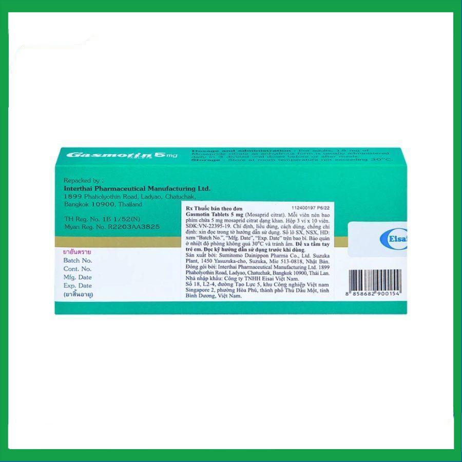 - Giá của Thuốc Gasmotin 5mg trên thị trường khoảng: 150.000đ/ Hộp. Mức giá trên chưa bao gồm cước phí vận chuyển tới tận tay người tiêu dùng. Tùy theo từng đơn vị phân phối mà giá có thể sẽ bị chênh lệch nhau, tuy nhiên mức chênh lệch cũng không đáng kể.