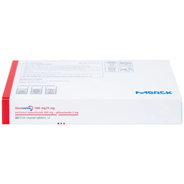 Thuốc Glucovance 500/5mg là sản phẩm của Merck (Pháp) chứa hoạt chất Metformin và Glibenclamide có tác dụng điều trị bệnh đái tháo đường type II nhằm kiểm soát được nồng độ đường huyết. Thuốc được kết hợp điều trị với chế độ ăn kiêng và luyện tập thể dục để gia tăng sự kiểm soát đường huyết tốt hơn trong suốt cả ngày. Sản phẩm cần tư vấn từ dược sỹ. |