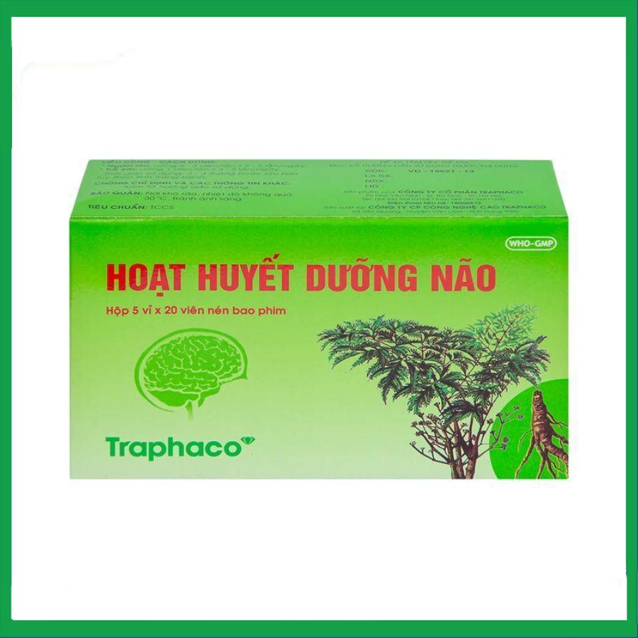 Thuốc Hoạt Huyết Dưỡng Não bao phim Traphaco điều trị suy giảm trí nhớ, căng thẳng thần kinh (5 vỉ x 20 viên)