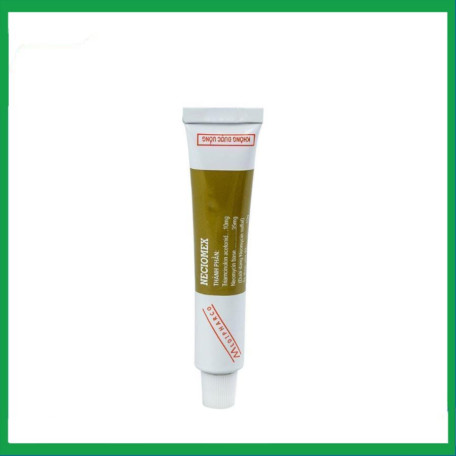 Thuốc mỡ bôi da Neciomex là sản phẩm của Medipharco chứa hoạt chất Neomycin base (dưới dạng Neomycin sulfat) và Triamcinolon acetonid. Thuốc mỡ Neciomex được dùng bôi ngoài da để điều trị các bệnh chàm, viêm da đáp ứng với corticoid có bội nhiễm do tụ cầu và các vi khuẩn khác nhạy cảm với Neomycin.