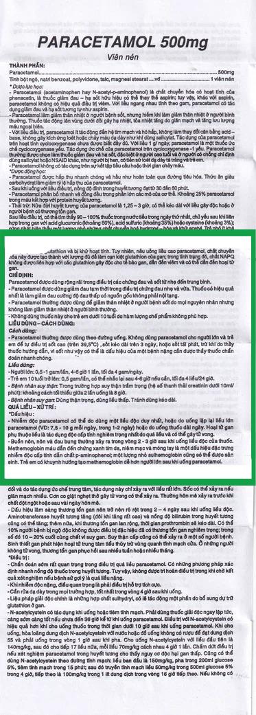 Thuốc Paracetamol 500mg Armephaco có thành phần chính Paracetamol, dùng để điều trị các chứng đau và sốt từ nhẹ đến trung bình.
