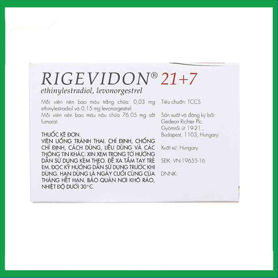 - Thuốc Rigevidon 21+7 Gedeon hiện được bán chính hãng ở nhà thuốc, bệnh viện trên toàn quốc, quý vị có thể mua tại: Nhà Thuốc Đa Phúc, Hotline: 0986333646. Địa chỉ: Số 159, ngõ 503, đường Ninh Hiệp, thôn 2, Xã Phù Đổng, Hà Nội (Bản đồ hướng dẫn)