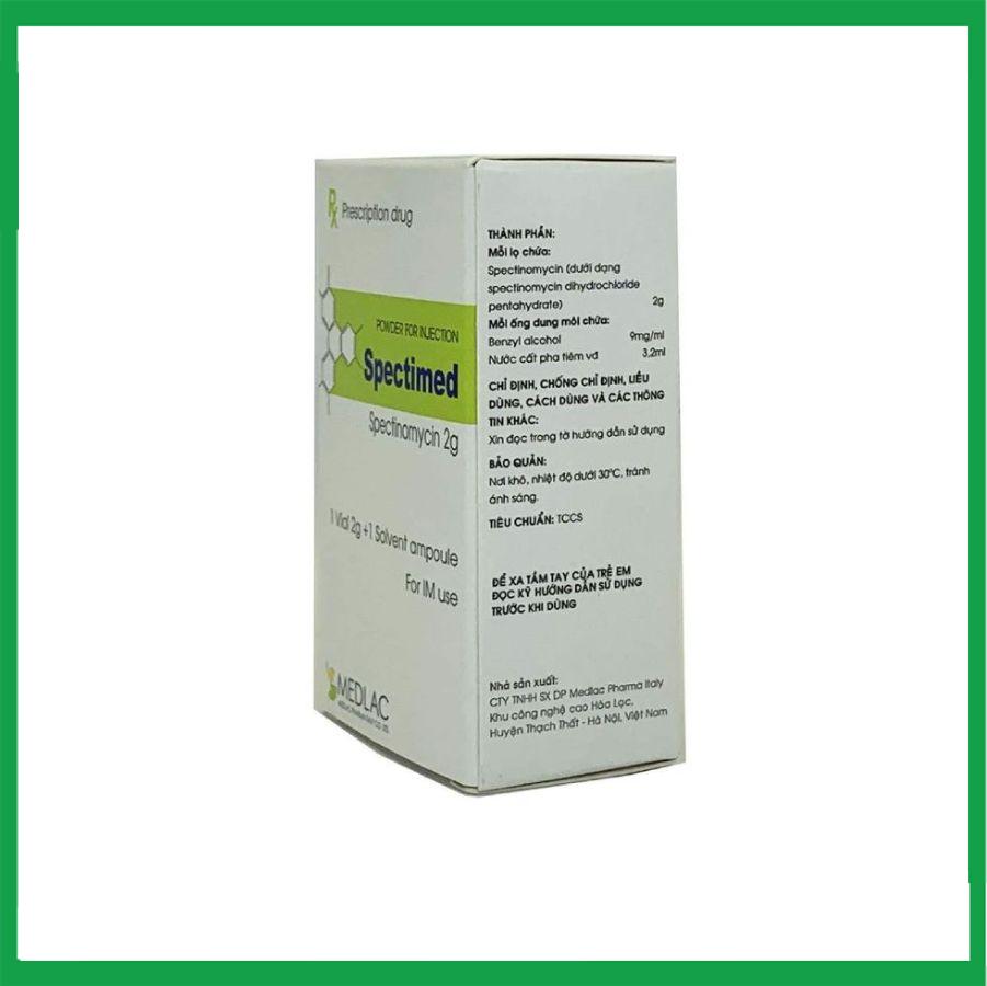 Thuốc bột pha tiêm Spectimed hộp chứa 1 lọ và 1 ống dung môi được biết đến khá phổ biến với tác dụng điều trị bệnh lậu, các biến chứng do lậu cầu gây ra như ciêm niệu đạo, viêm cổ tử cung…