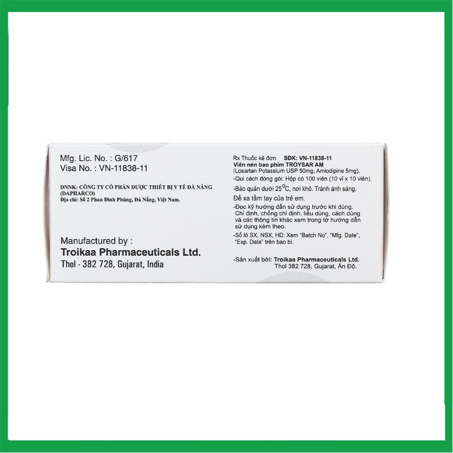 Thuốc Troysar AM Troikaa điều trị tăng huyết áp, đau thắt ngực (10 vỉ x 10 viên)