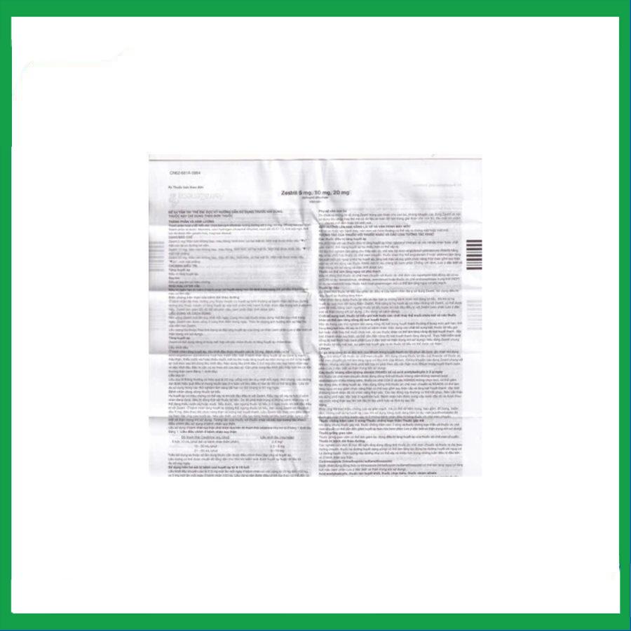 - Quá mẫn với Zestril hoặc bất kỳ tá được nào hoặc các thuốc ức chế men chuyển angiotensin (AE) khác.