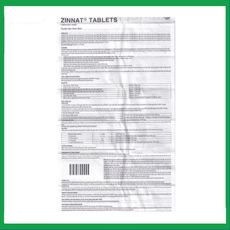 Zinnat tablets 125mg của Công ty Dược phẩm GlaxoSmithKline PLC, thành phần chính là cefuroxim (dạng cefuroxim axetil). Thuốc dùng để điều trị những nhiễm khuẩn do vi khuẩn nhạy cảm gây ra.