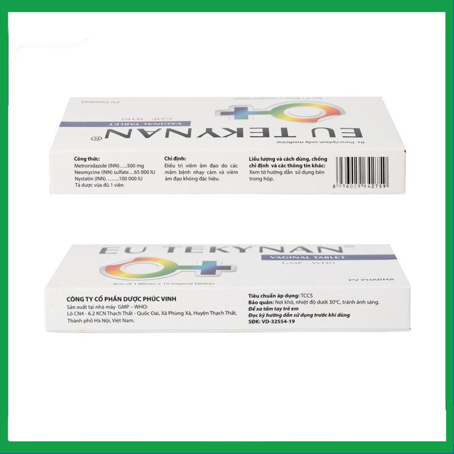- Viên nén đặt âm đạo Eu Tekynan dùng điều trị viêm âm đạo do các mầm bệnh nhạy cảm và viêm âm đạo không đặc hiệu.