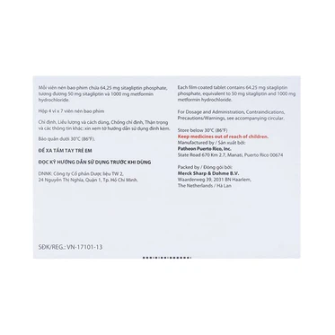 Liều khởi đầu 50mg sitagliptin/500mg metformin, ngày 2 lần, dùng đường uống.