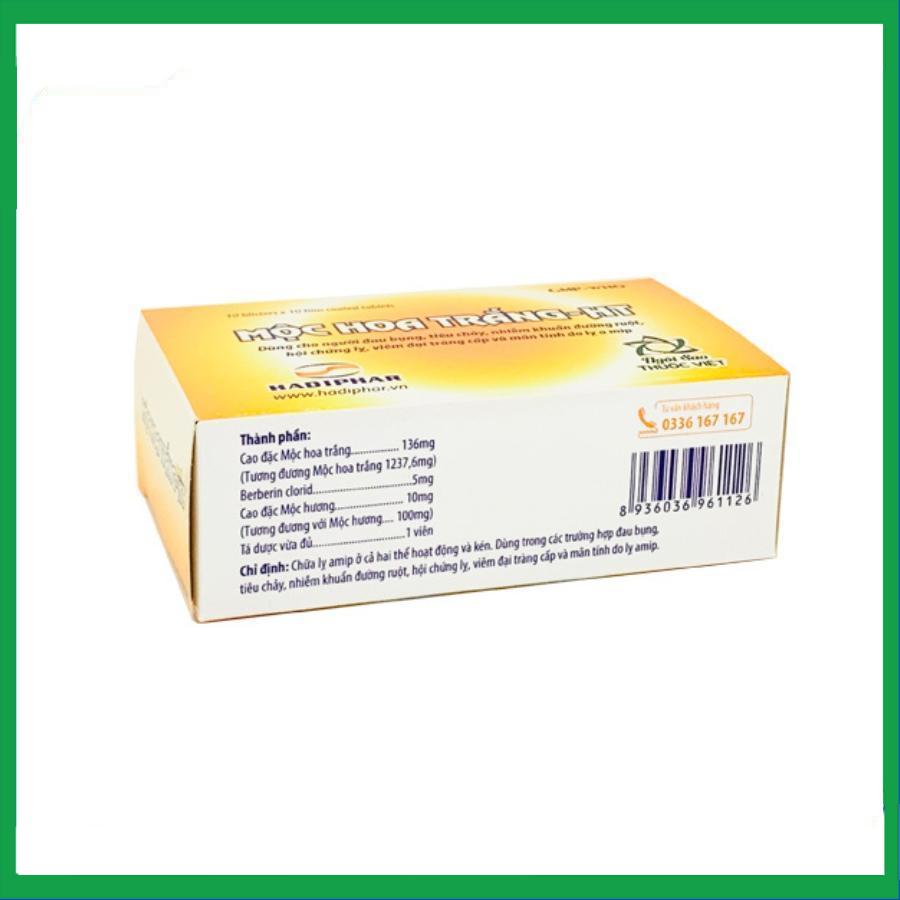 Viên nén Mộc Hoa Trắng chữa lỵ amid ở cả thể hoạt động và thể kén (10 vỉ x 10 viên)
