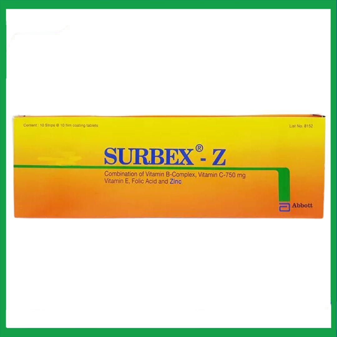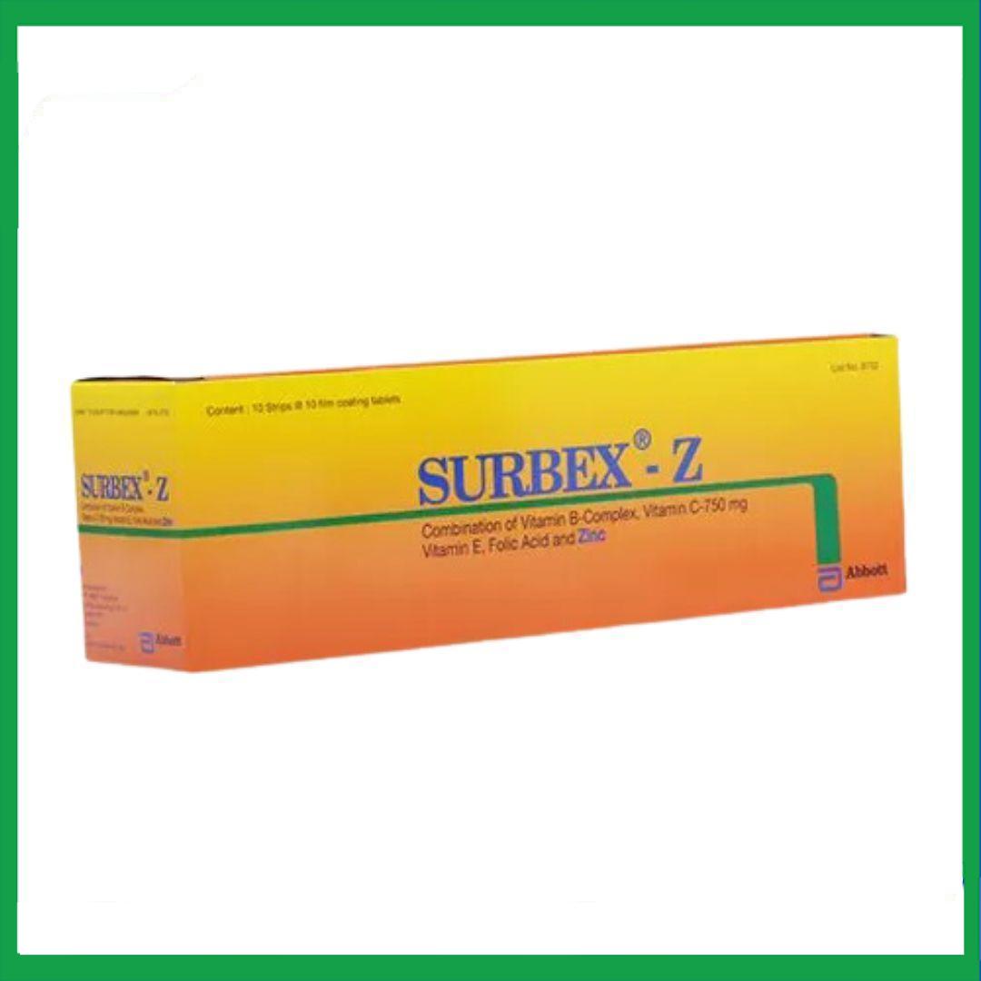 Viên nén Surbex-Z chứa hàm lượng vitamin cao và kẽm, dùng để điều trị chứng thiếu các nhóm vitamin nhóm B, vitamin C và kẽm.