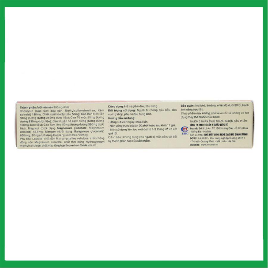 Viên uống Bách Thống Vương hỗ trợ giảm đau, tiêu sưng trong các chứng đau đầu (3 vỉ x 10 viên)